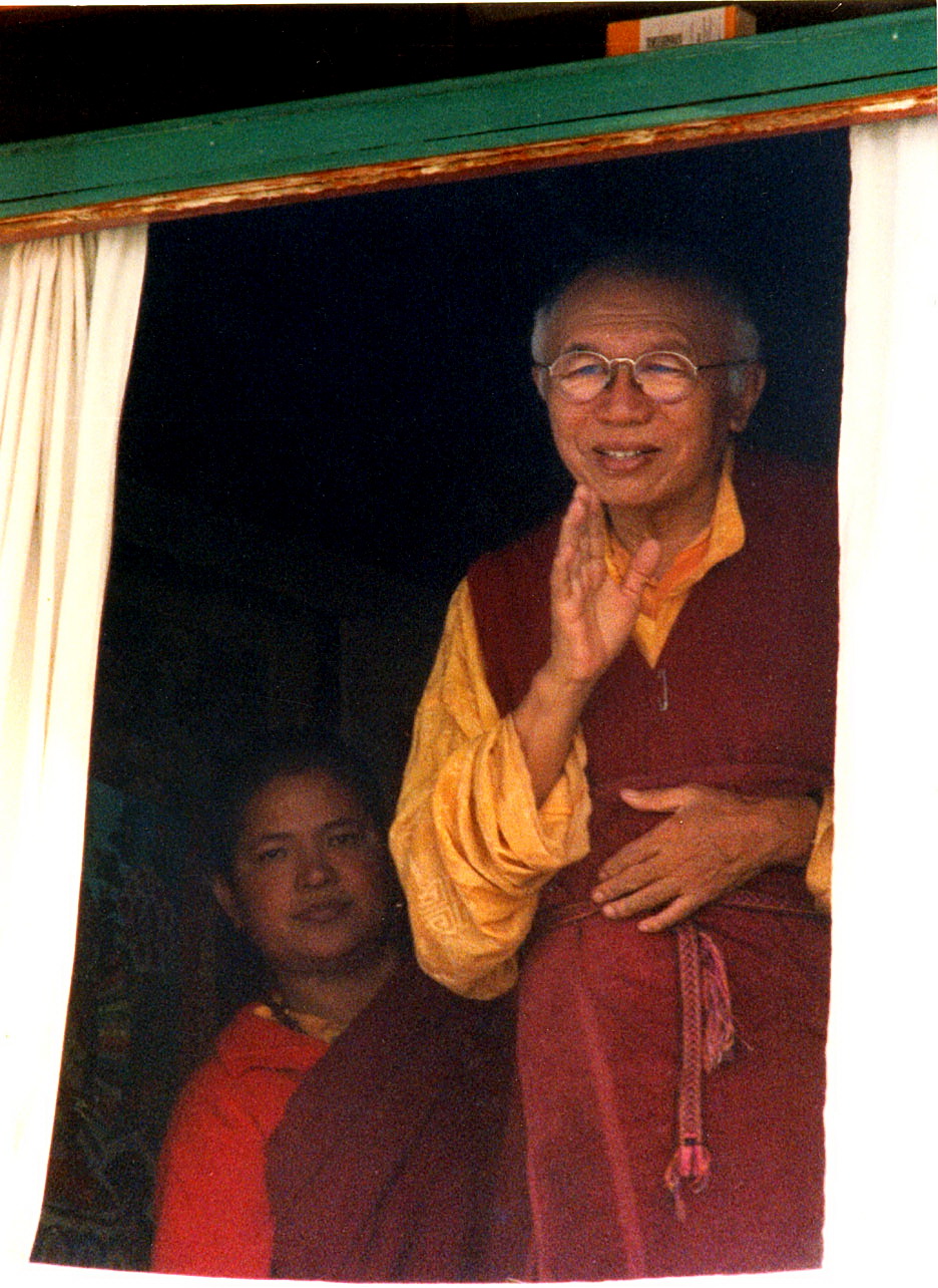 waving from the window of his room at Nagi Gompa in 1996.